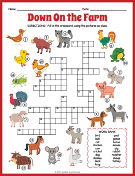 Farm Animals Crossword Puzzle By Puzzles To Print TpTFarm Animals Crossword Puzzle By Puzzles To Print TpT
