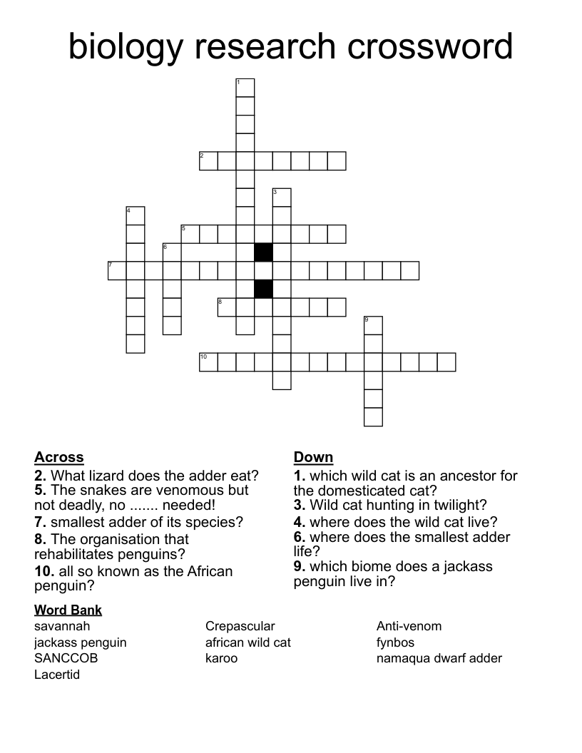 Biology Research Crossword WordMint