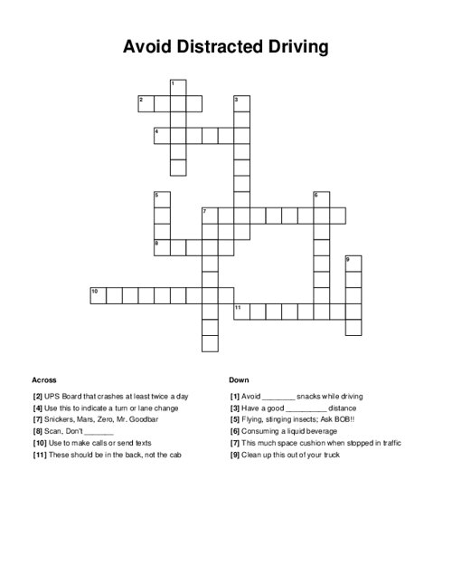 Avoid Distracted Driving Crossword PuzzleAvoid Distracted Driving Crossword Puzzle