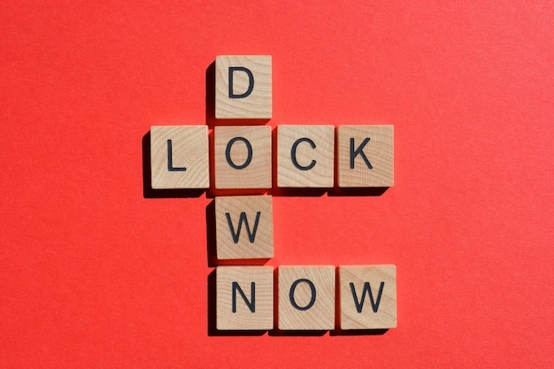 Premium Photo Lock down now crossword on red avoid the spreadPremium Photo Lock Down Now Crossword On Red Avoid The Spread