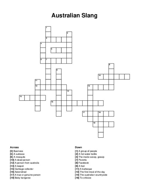 Australian Slang Crossword Puzzle