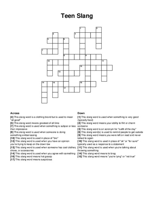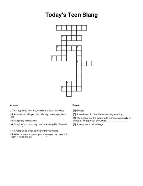Today 39 S Teen Slang Crossword Puzzle