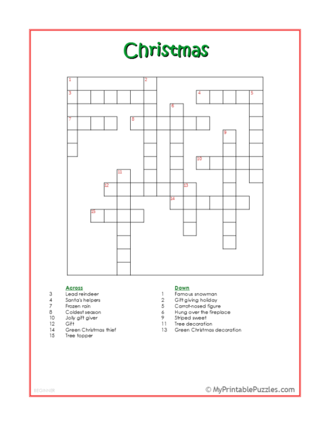 Christmas Crossword Puzzle Beginner My Printable Puzzles