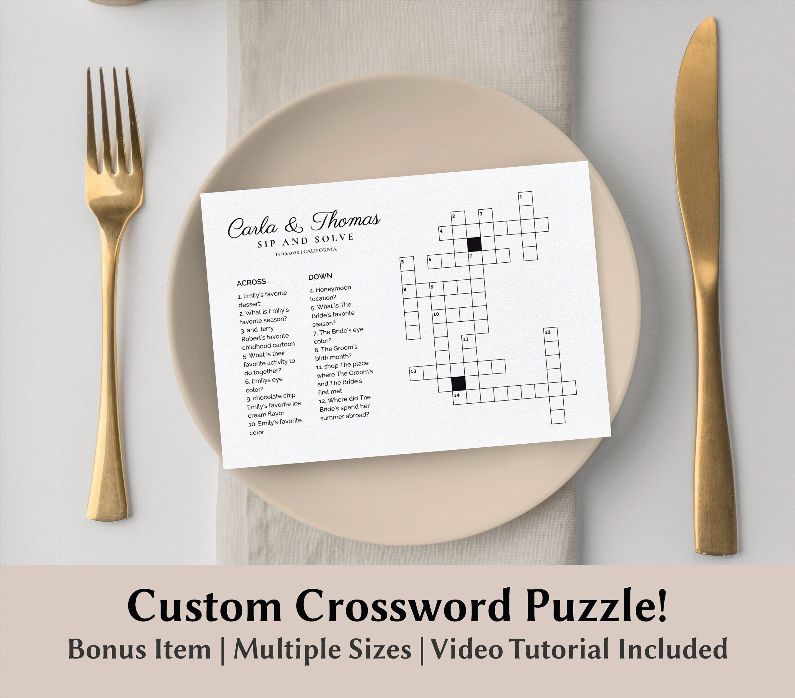 Custom Large Format Bridal Crossword Puzzle Bridal Party Game Template
