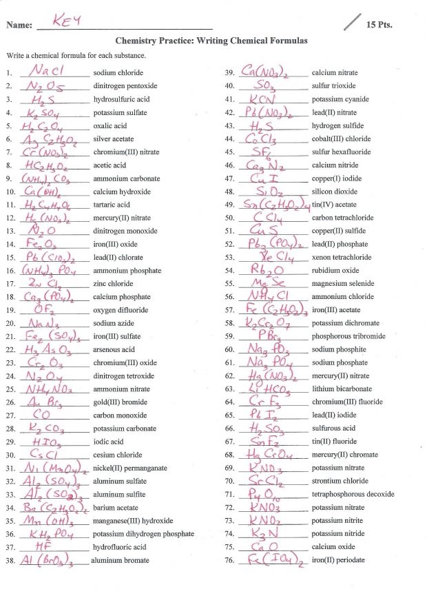 Chemical Formula Writing Worksheets Answer Key Worksheets Samples