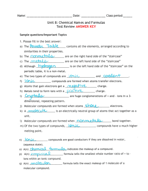 Fillable Online Unit 8 Chemical Names And Formulas Test Review ANSWER