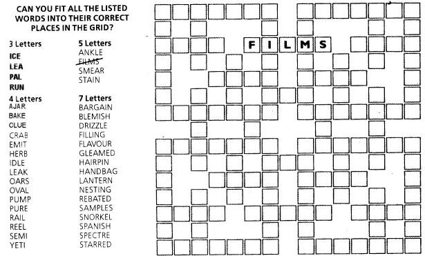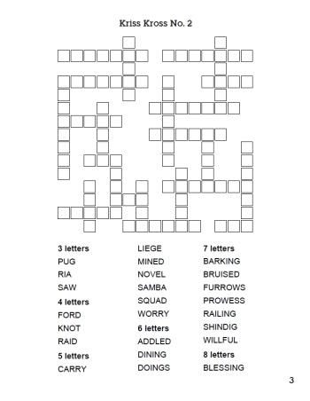 Download and Print Criss Crossword Listed below