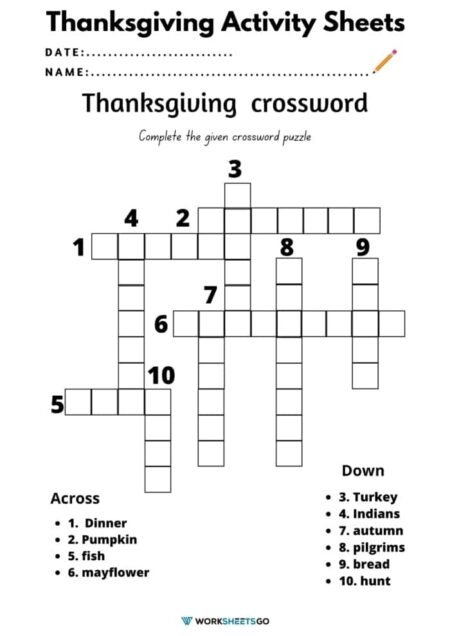 Thanksgiving Crossword Activity Sheets WorksheetsGO