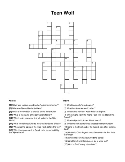 Download and Print Crossword For Teens Listed below