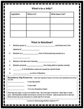 Food Preservation Jams Jellies Preserves Marmalades Worksheet Lab