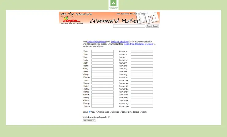 Free Easy Crossword Puzzle Maker