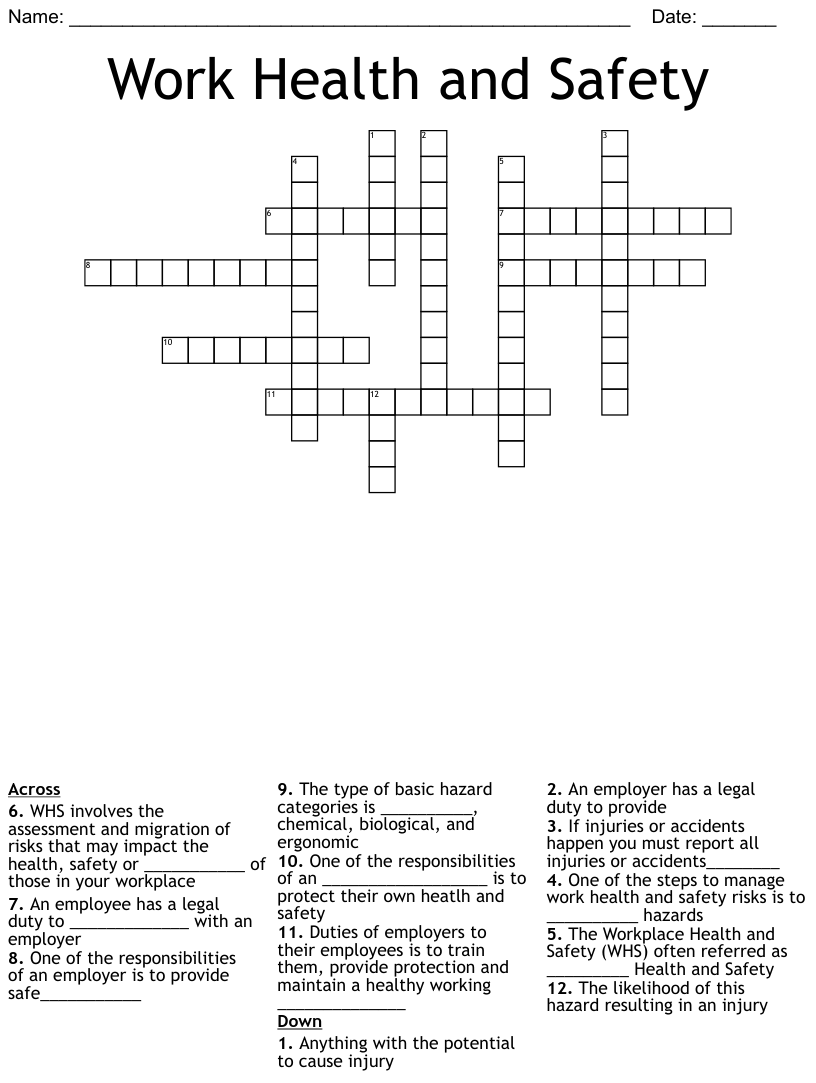 Work Health And Safety Crossword Work Health Patient Safety Week