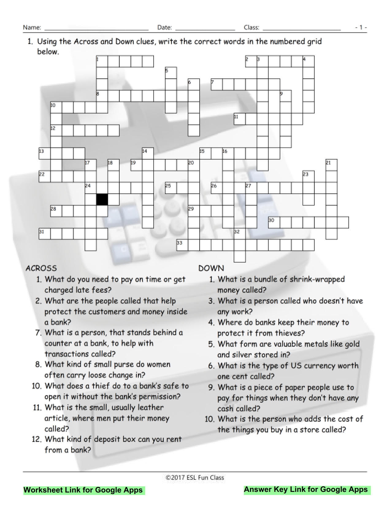 Printable Crossword Puzzles Money Printable Crossword Puzzles