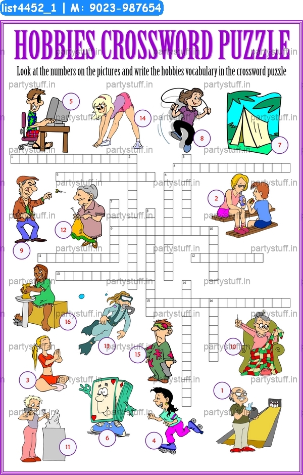Hobbies Crossword Puzzle Paper Games In Hobby Theme
