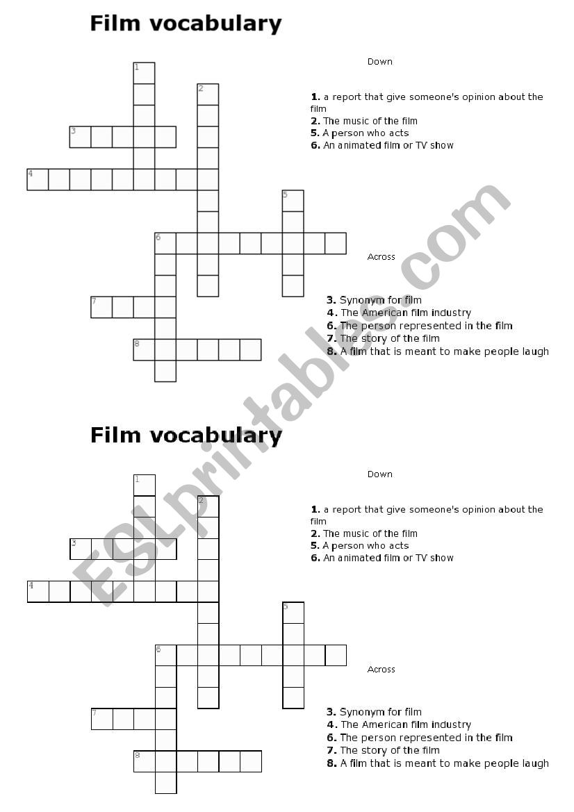 Movie Vocabulary Crosswords ESL Worksheet By Maribulle