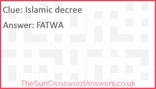 Islamic Decree Crossword Clue TheSunCrosswordAnswers Co Uk