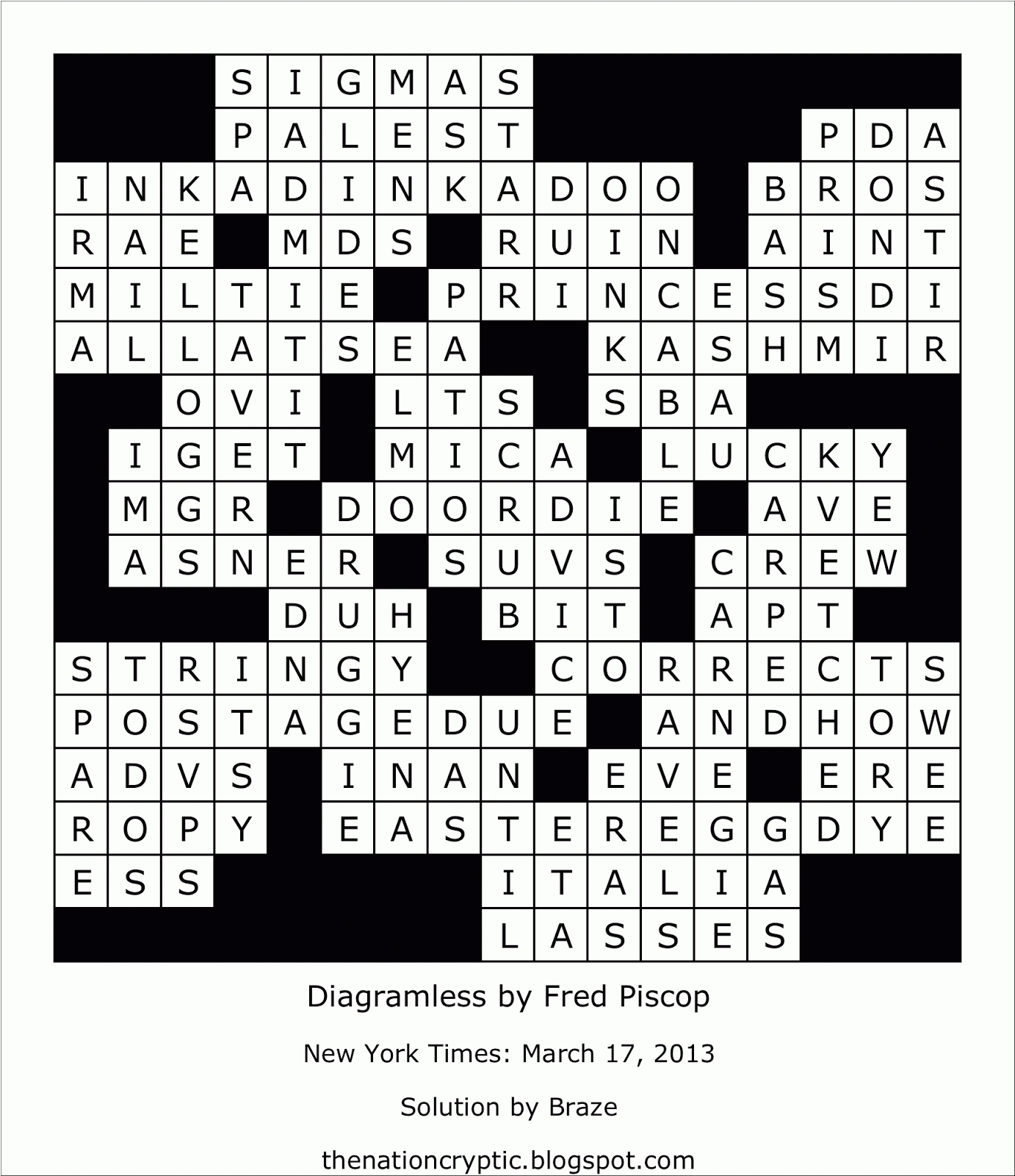 Diagramless Crossword Printable Printable Crossword Puzzles Online