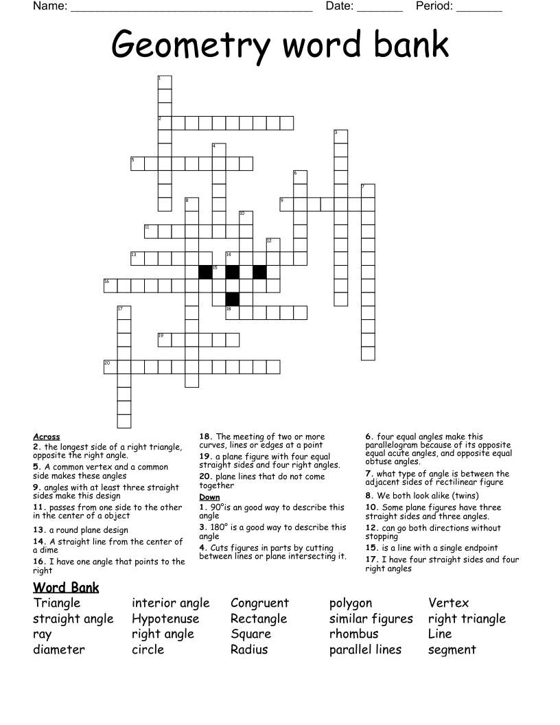 Crossword Puzzles Printable With Word Bank