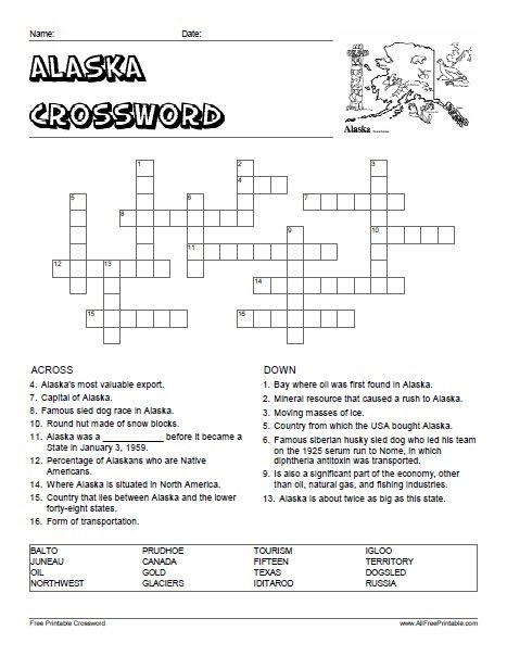 Alaska Crossword Puzzle Free Printable