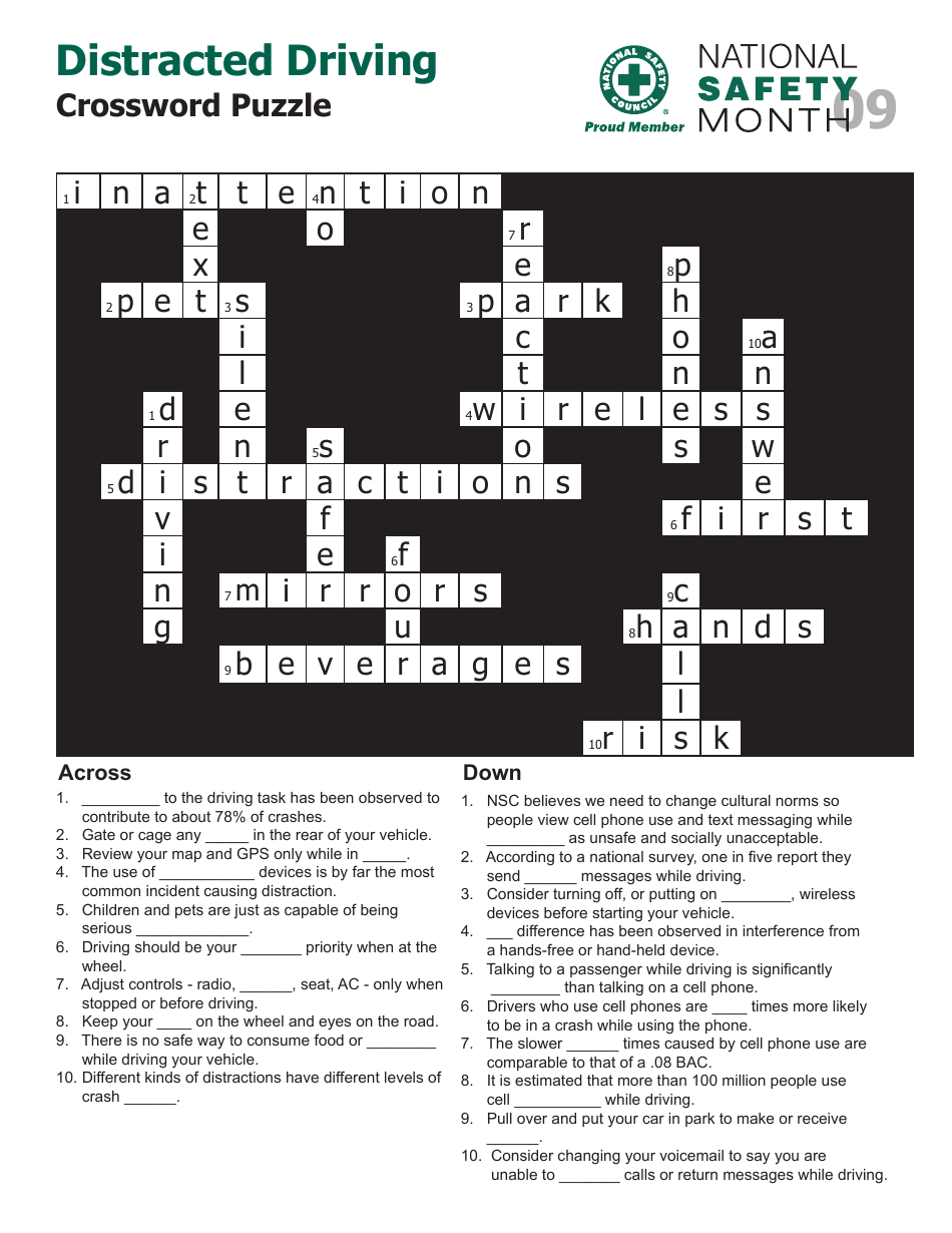 Safety Crossword Puzzle Answer Key Free Crossword Puzzles Printable
