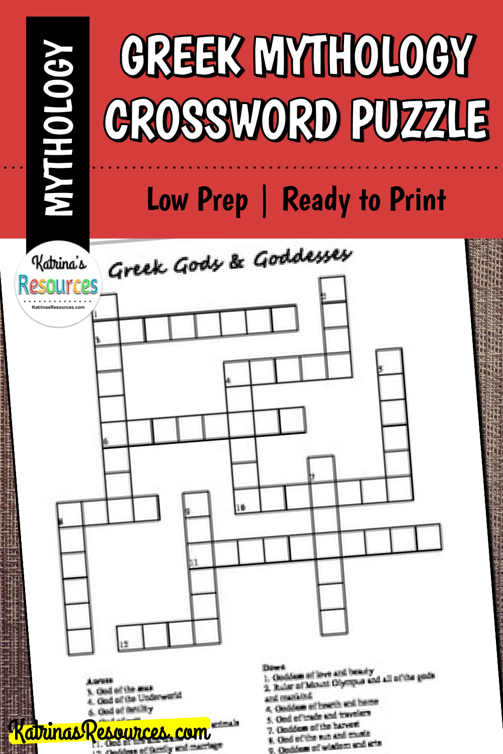Greek Gods Crossword Puzzle Greek Mythology Crossword Puzzle Word