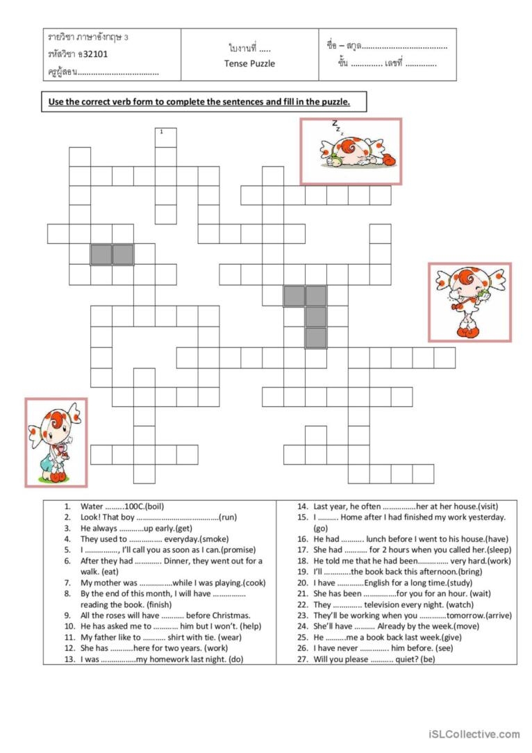 Verb Puzzle With Tenses Crossword English ESL Worksheets Pdf Doc