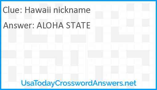 Hawaii Nickname Crossword Clue UsaTodayCrosswordAnswers