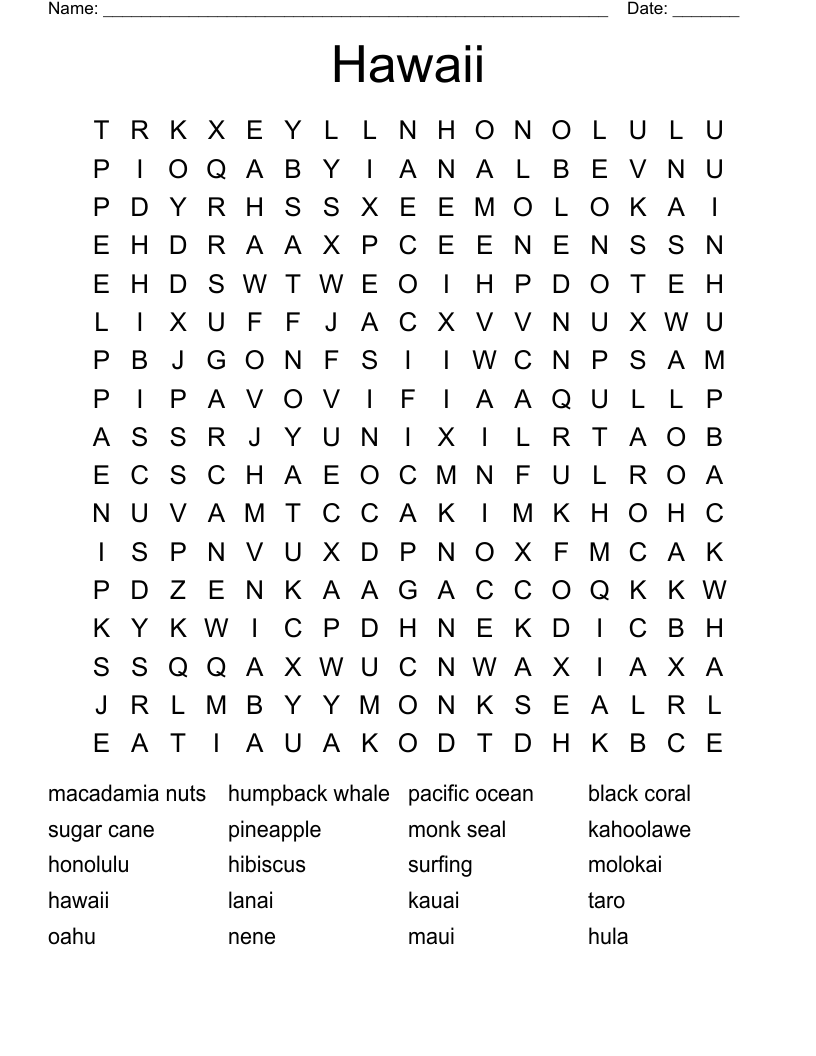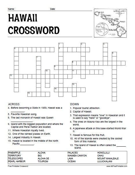 Hawaii Crossword Puzzle Free Printable
