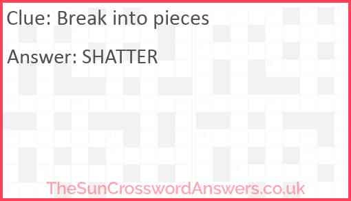 Break Into Pieces Crossword Clue TheSunCrosswordAnswers co ukBreak Into Pieces Crossword Clue TheSunCrosswordAnswers Co Uk