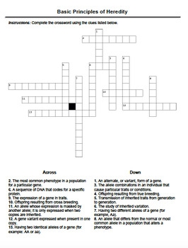 Basic Principles Of Heredity Vocabulary Crossword By Genetically Inclined