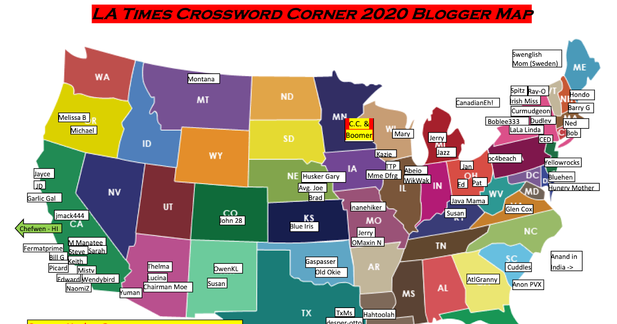 L A Times Crossword Corner 2020 L A Times Crossword Corner Map