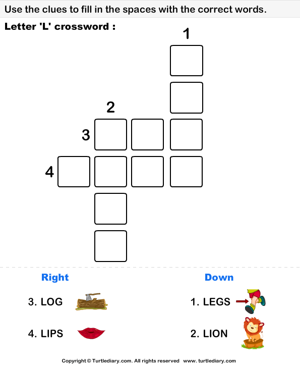 Letter L Crossword Turtle Diary Worksheet
