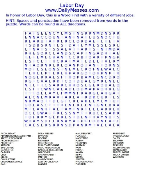 Labor Day Crossword Puzzle Printable Grace Palmer 39 S Crossword Puzzles