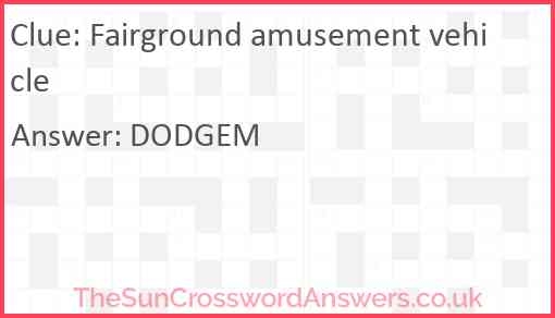 Fairground Amusement Vehicle Crossword Clue TheSunCrosswordAnswers Co Uk