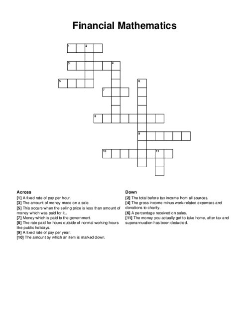 Financial Mathematics Crossword Puzzle