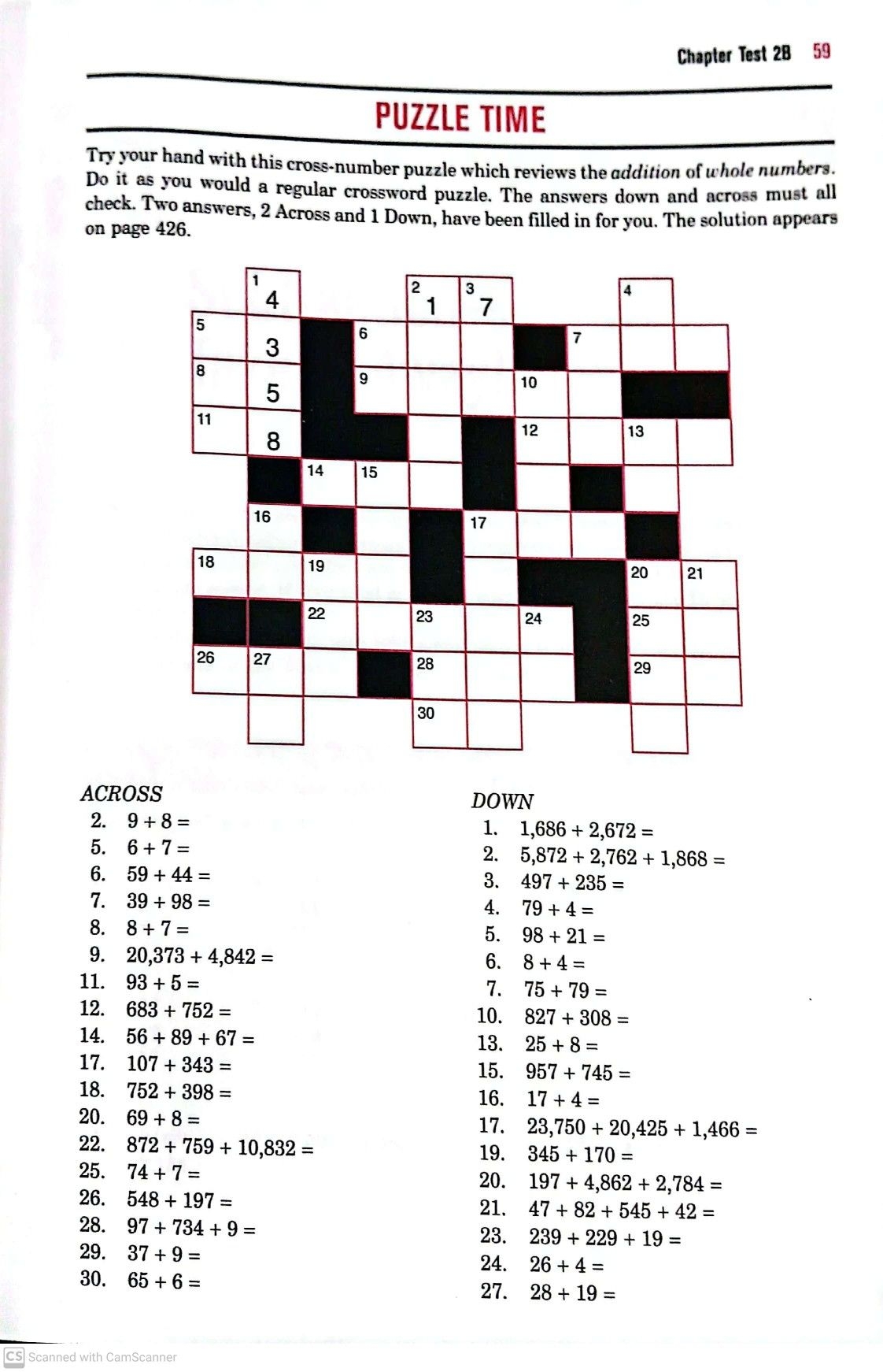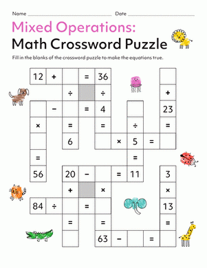 Math Crossword Puzzle Fun Activity For Fourth Graders