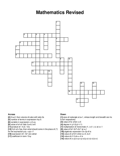 Mathematics Crossword Puzzle puzzles come in a large selection of difficulty levels and themes. Whether you’re a beginner or an expert, you can find puzzles tailored to your skill level. Additionally, there are themed puzzles that revolve around topics like pop culture, history, geography, and more, allowing you to gain knowledge while having fun.