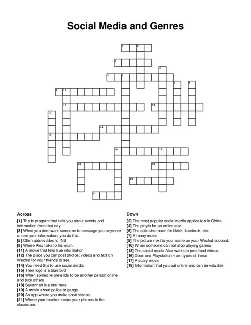 Social Media Crossword PuzzleSocial Media Crossword Puzzle