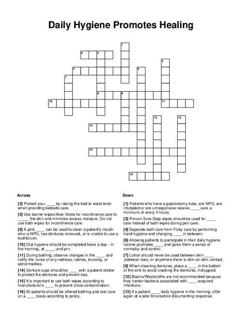 Daily Hygiene Promotes Healing Crossword Puzzle