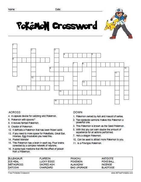 Download and Print Pokemon Crossword Puzzle Printable Listed below