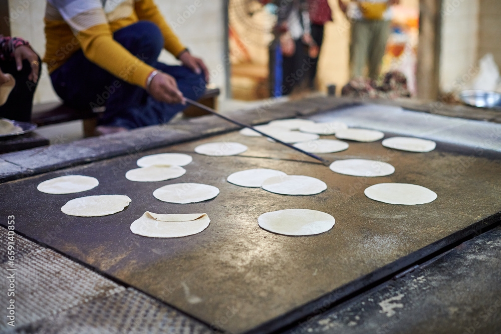 Making Of Chapati Round Flatbreads For Langar In Sikh Gurudwara Temple