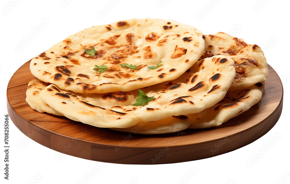 Round Flatbreads On Wooden Board Isolated On Transparent Background