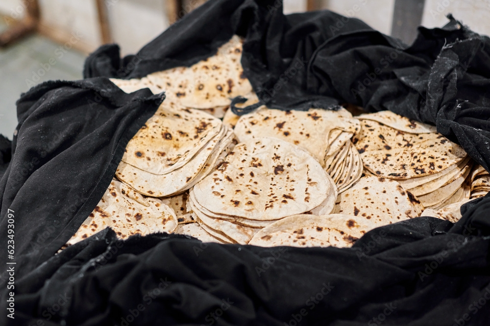 Batch Of Chapati Round Flatbreads In Black Bag For Langar In Sikh