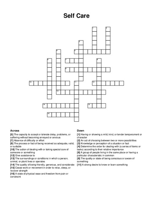 Self Care Crossword Puzzle Crossword PuzzleSelf Care Crossword Puzzle Crossword Puzzle