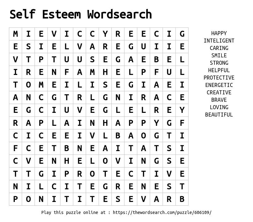 Self Esteem Wordsearch Word Search