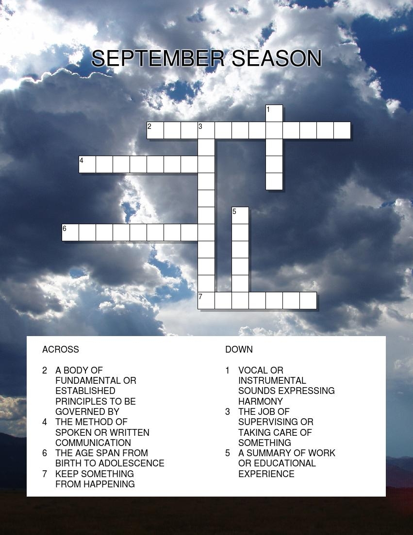 Download and Print September Crossword Puzzle Printable Listed below