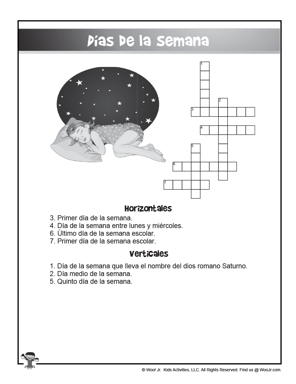 Printable Spanish Crossword Puzzle Woo Jr Kids Activities