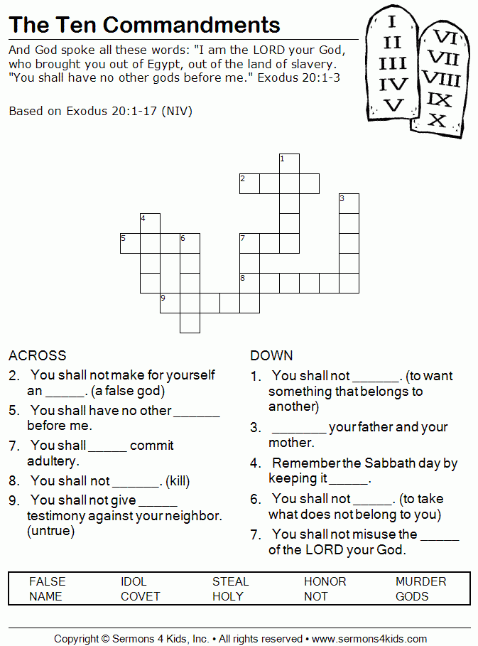 Download and Print Ten Commandments Crossword Puzzle Printable Listed below