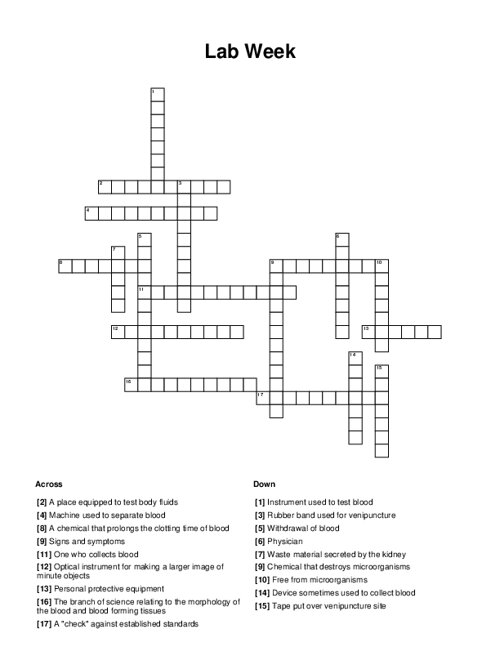 Laboratory Week Crossword PuzzleLaboratory Week Crossword Puzzle