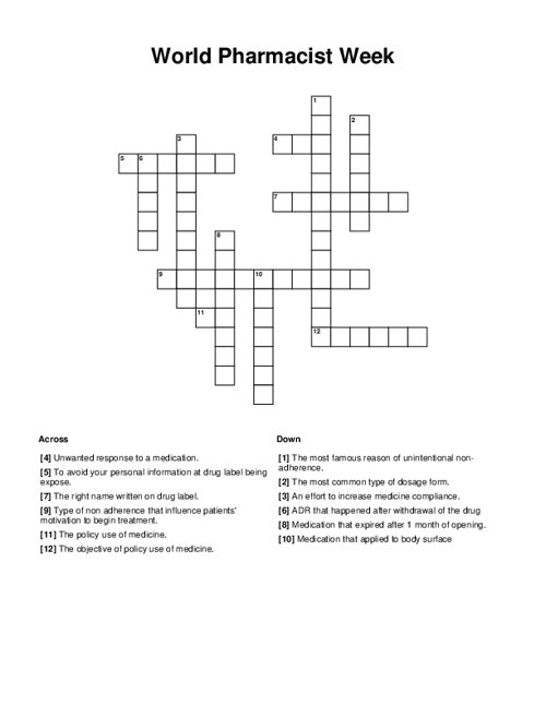 World Pharmacist Week Crossword PuzzleWorld Pharmacist Week Crossword Puzzle